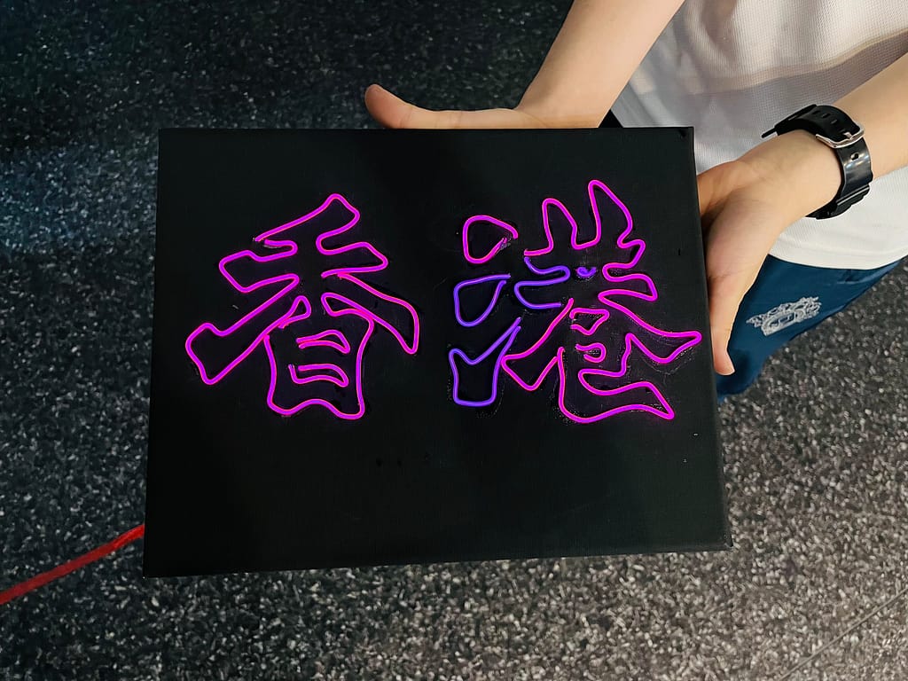 使用低電壓推動的冷光線,在畫布上製作癌一無二的圖案,彷製香港昔日霓虹滿街的風彩。