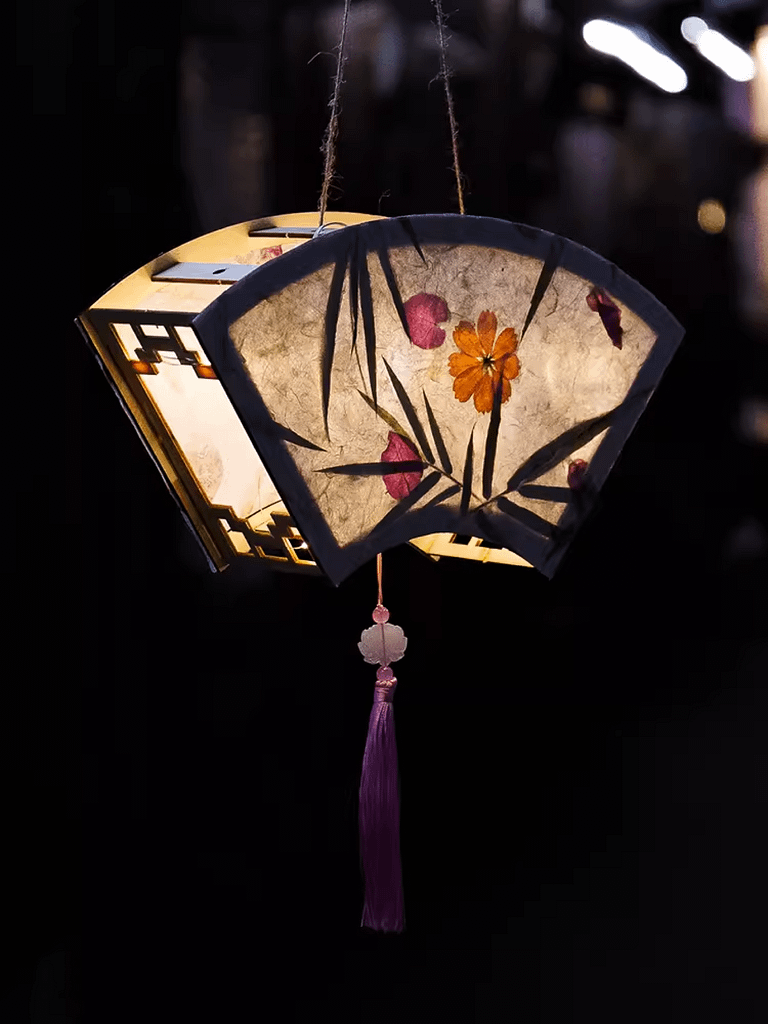 燈籠組件由CNC開發,非常精準。黏合花草 宣紙,製作節⽇燈籠。